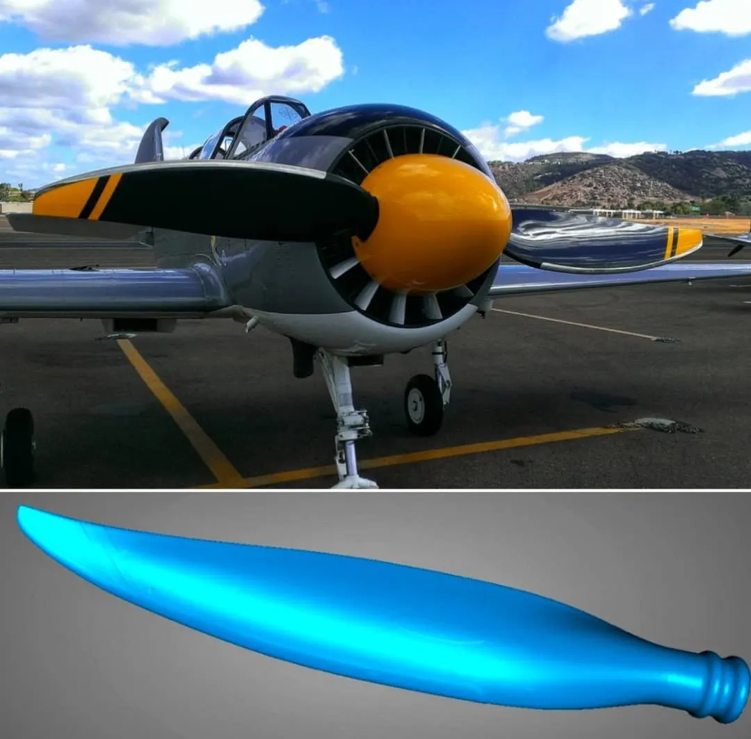 Objeto: pala de hélice de avión con geometría curva ampliada.