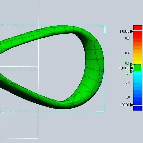 Objektet kombinerer jevne overganger med en kontinuerlig loopstruktur. Først tok vi bilder av den ytre overflaten. Deretter analyserte vi gripesonene der hånden legger press. Som et resultat ble Reverse engineering av svømmeverktøy prosessen krevde at både formkontinuitet og ergonomisk hensikt ble ivaretatt.
